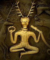 Image 2: The "Cernunnos" type antlered figure or "horned god," on the Gundestrup Cauldron (National Museum of Denmark).